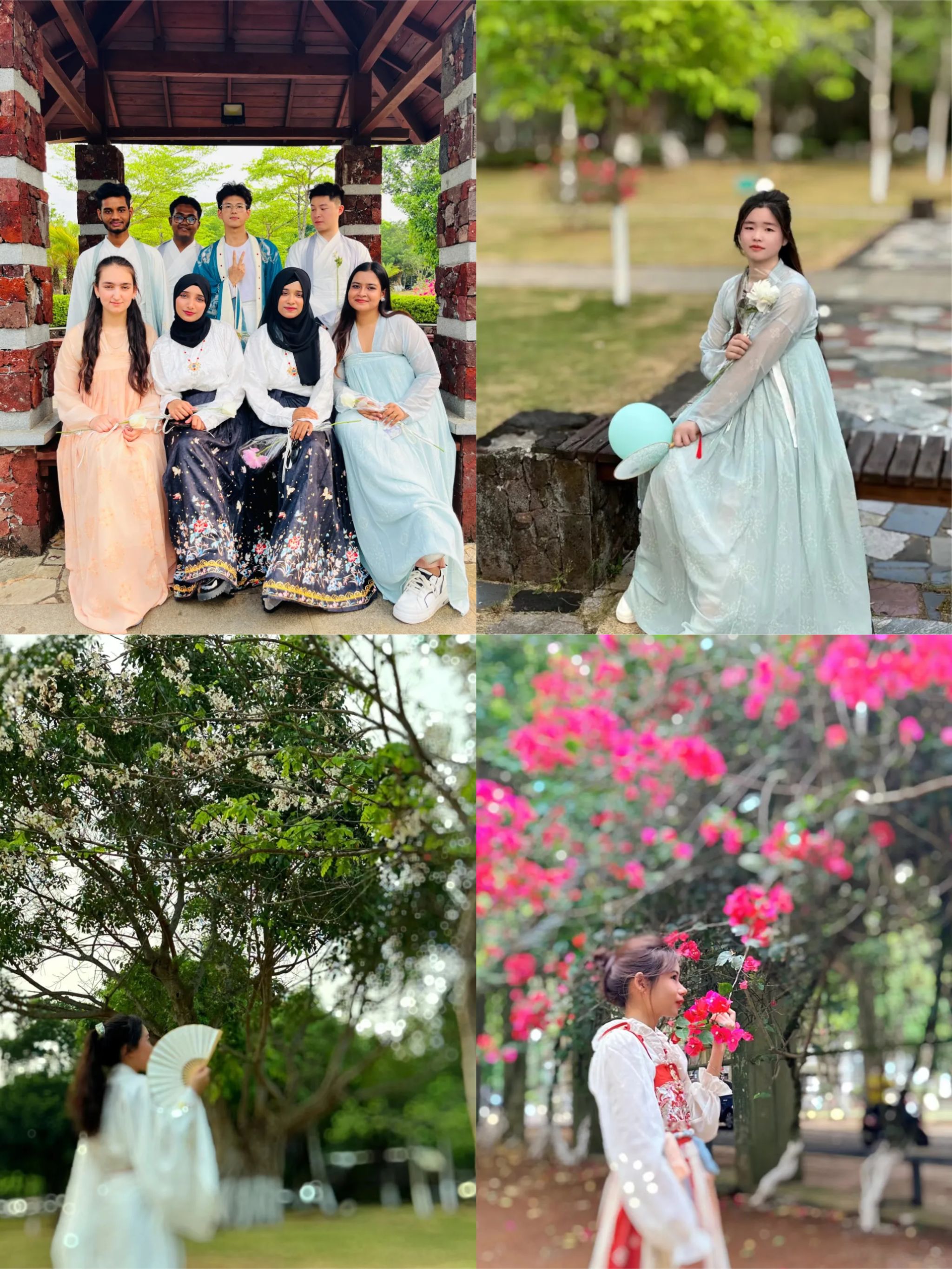 近日,国际教育学院暖愈青心心理工作站在大学生文化公园举办“‘Campus Walk’发现身边的美暨汉服体验”摄影活动,帮助同学们发现和欣赏身边的校园美景,减轻心理焦虑、舒缓压力,感受大学生活的纯粹与美好,促进中外学生的友好交流。