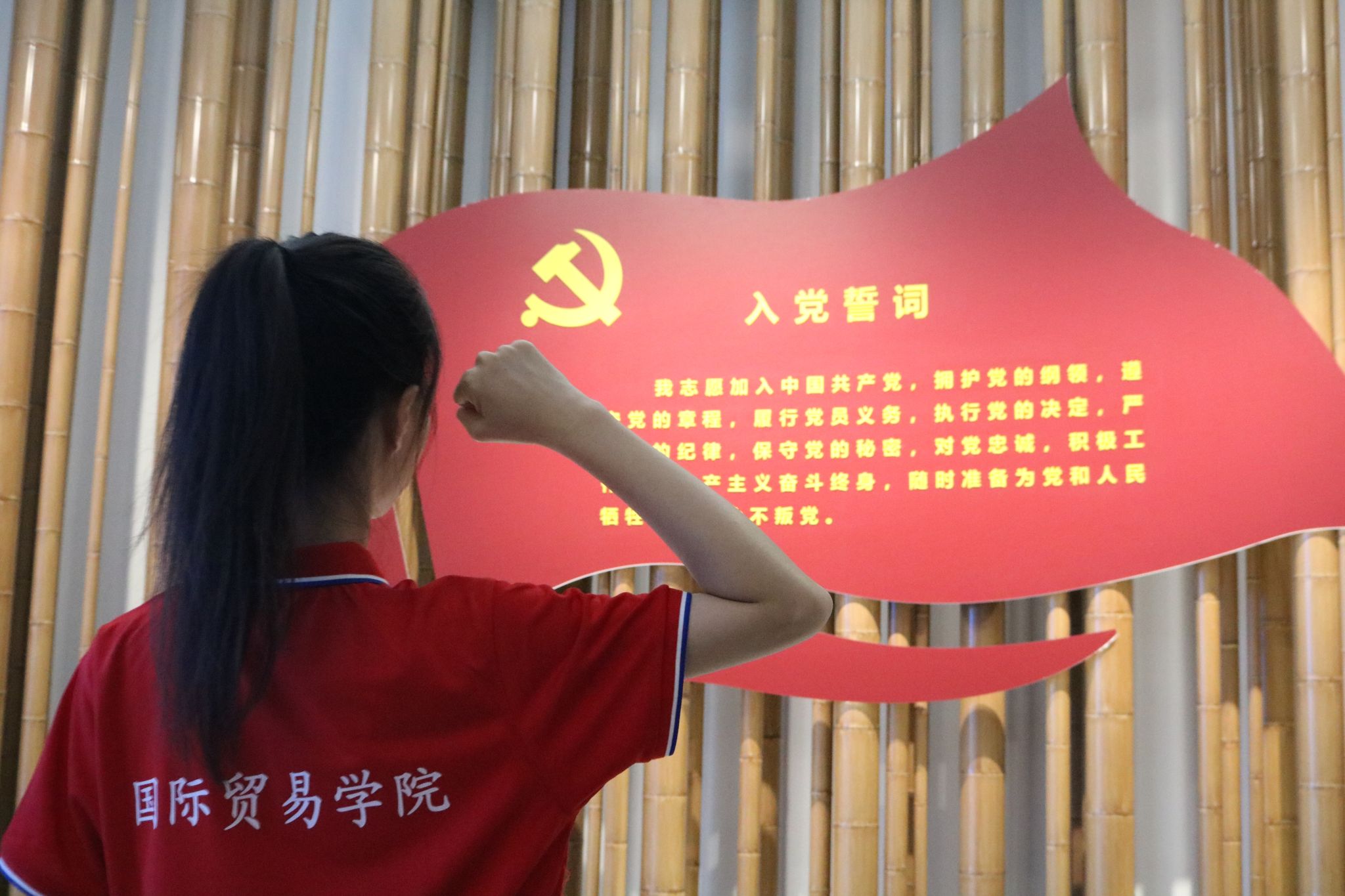 在鲜红的党旗前,所有毕业生党员重温了入党誓词。在铿锵有力的宣誓中,全体党员感受到肩上沉甸甸的光荣使命,更加坚定了理想信念,将时刻绷紧反腐倡廉这根弦,永葆清正廉洁的底色。