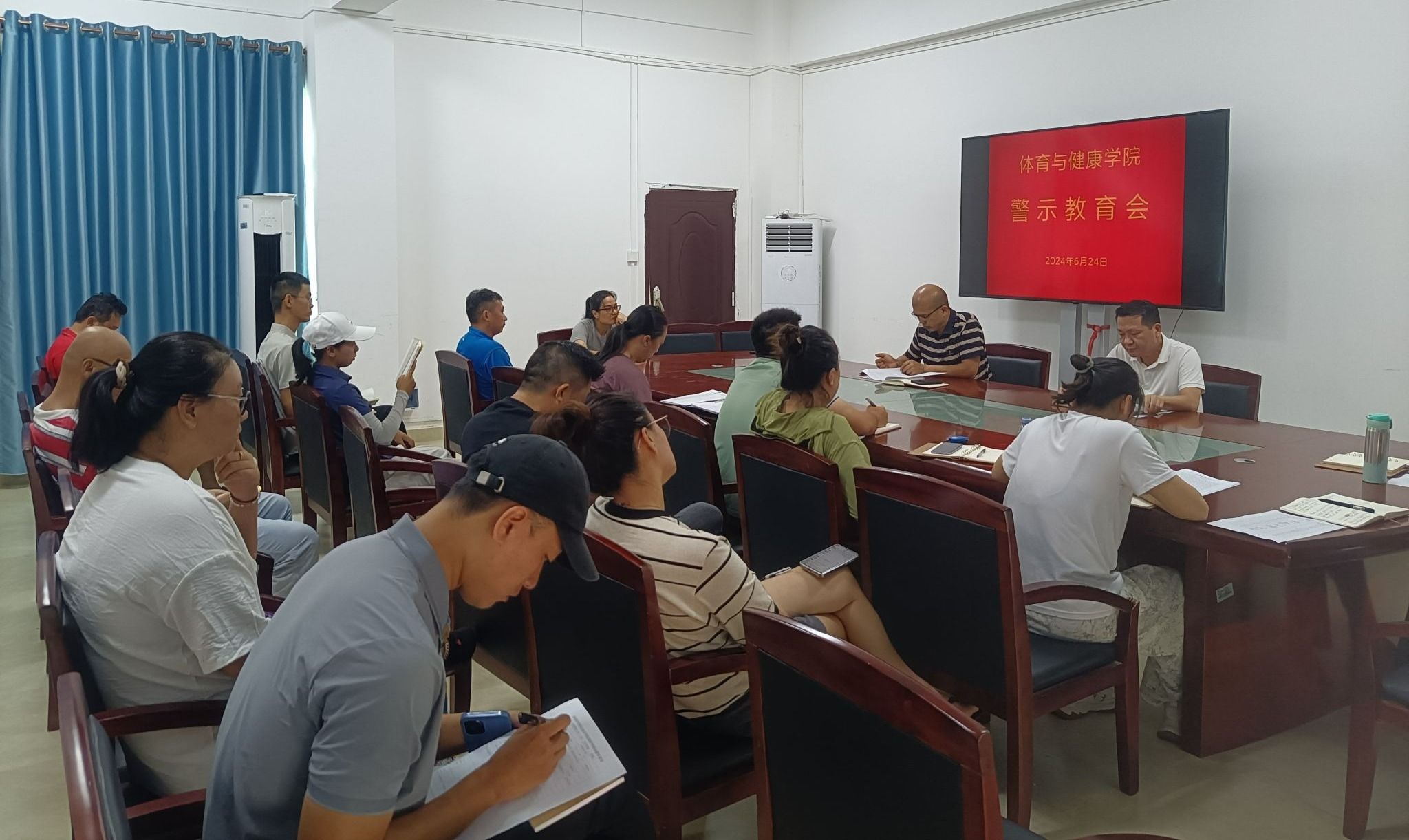 2024年6月24日,体育与健康学院召开警示教育会,深入学习习近平总书记关于全面加强党的纪律建设的重要论述,结合反面典型案例开展警示教育,深化以案促学、以案为鉴。