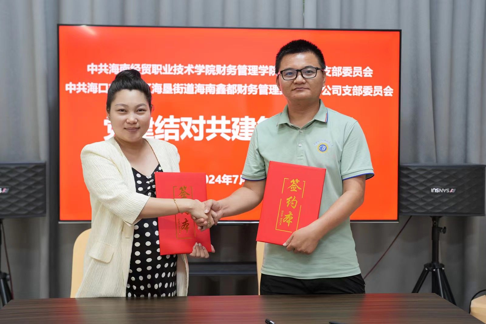 当天,财务管理学院学生第二党支部与海南鑫都财务管理集团有限公司党支部签订《党支部共建协议书》。双方将开展常态化、多元化、优质化的结对共建活动,加强组织建设互帮共建、突出人才培养双向互动、强化社会责任共同担当,推动党建和业务融合发展,在持续提升党建工作水平的同时提升人才培养质量,在推进校企融通、产教融合、科教融汇的同时源源不断培养高素质人才、大国工匠、能工巧匠,为海南自由贸易港建设提供坚强有力的技术技能人才保障。