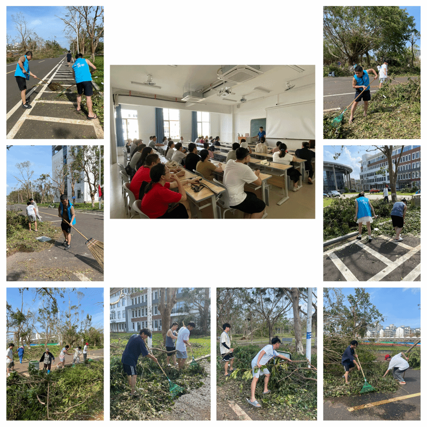 在超强台风“摩羯”过境后,学校党委吹响了灾后重建、复工复课的冲锋号,人文艺术学校党总支第一时间响应并组织全体教职工和学生开展重建工作。风雨无情,校园有爱,大家团结协作,众志成城,发扬不怕苦、不怕脏的精神,对第六教学楼责任区域和经贸北路全面清扫伏倒树木、路面积水、残枝败叶、玻璃碎片等垃圾。老师和同学们携手并进,奋战在每一个角落,以坚定的眼神、刚强的姿态和实际行动诠释着责任与担当。