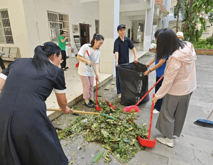 院领导分区分片,带领党员教师们对树木树枝、路面积水、残枝败叶等垃圾进行全面清扫清运,在鲜活的实践教学中开展爱党教育、爱国教育和爱校教育。院长马桂琴表示,全体党员教师要深度挖掘社会和校园各种思政元素,认真讲好抗风救灾这堂生动的思政课。