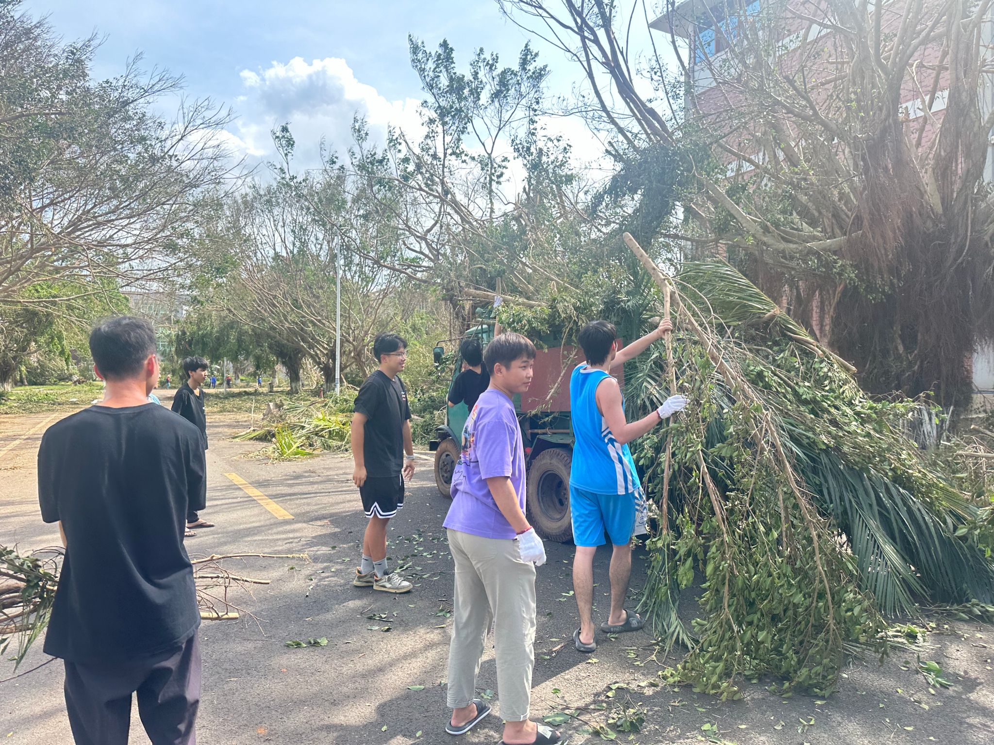 超强台风“摩羯”登陆海南,给beat365vip官网登录入口美丽校园造成严重损失。连日来,国际旅游学院召集全院青年志愿者,投身校园灾后恢复重建工作。