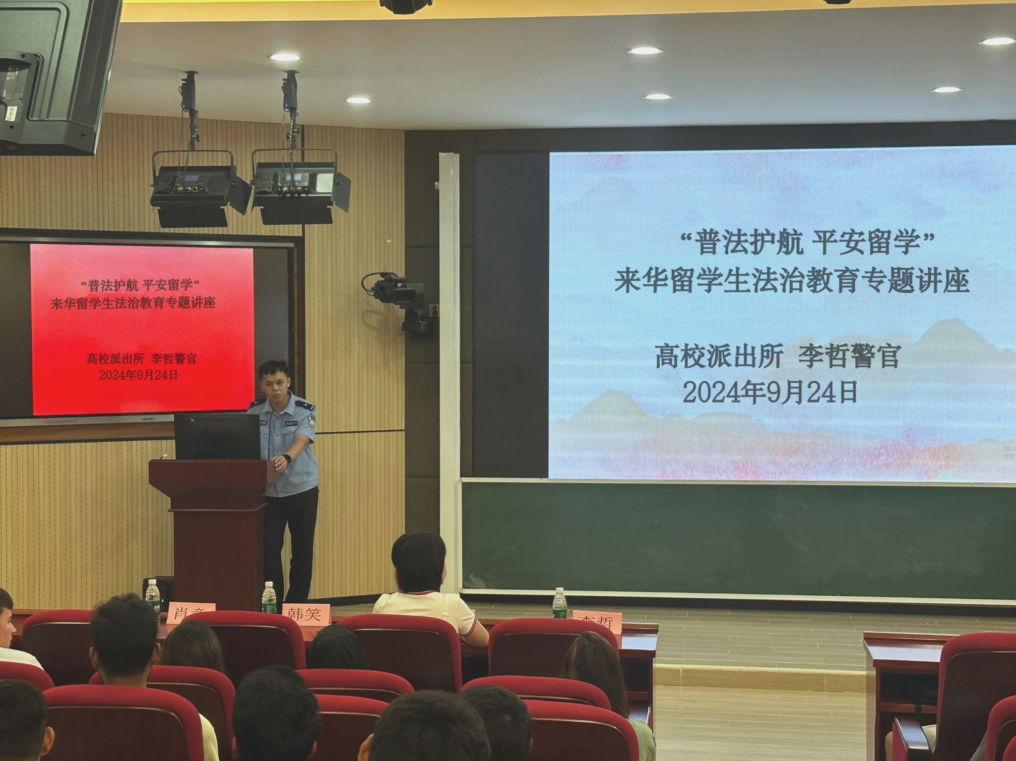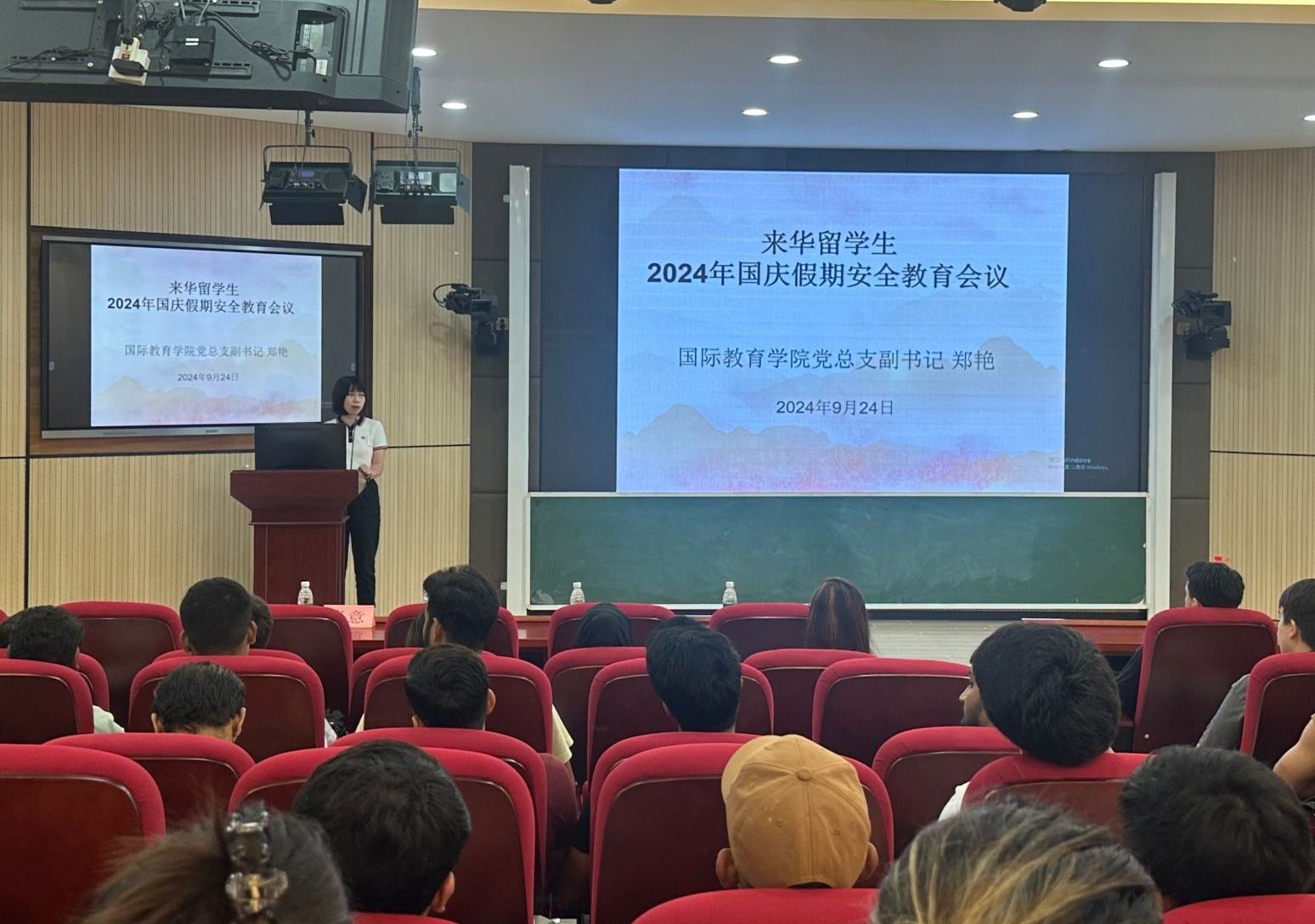 9月24日,国际教育学院开展法治教育暨校园安全教育活动。学院全体辅导员、在校留学生参加。