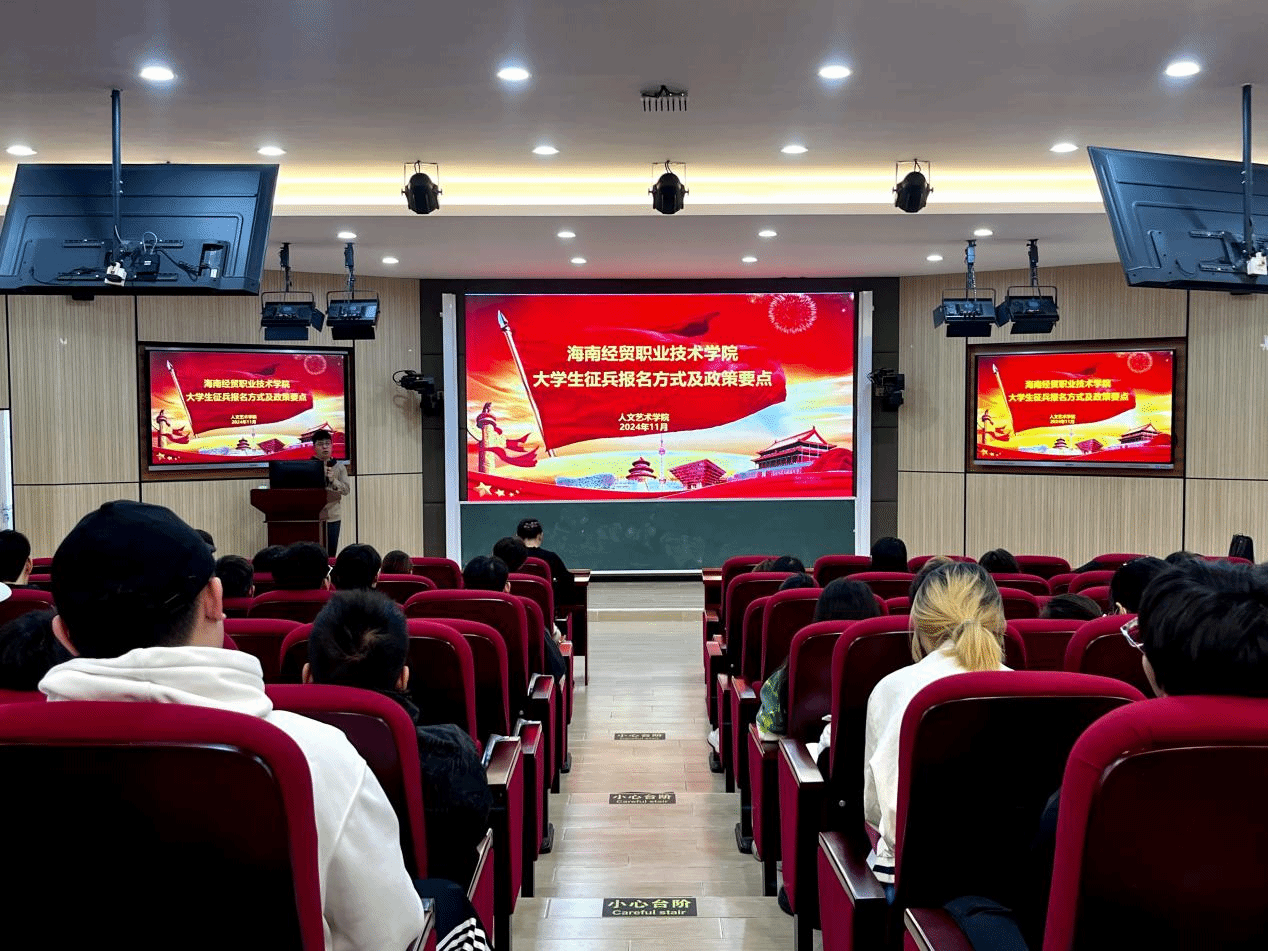 宣讲会结合海南省教育厅等五部门印发《关于促进海南高校毕业生等青年就业创业工作的若干政策措施》,详细讲解学校创业扶持基金申请流程。会议从“为什么要专升本”“海南省专升本政策”“如何备考”等方面,给学生们讲解了学历提升的目的和意义,向同学们介绍了入伍条件、入伍流程以及征兵入伍和退役就业安置等方面优惠政策。