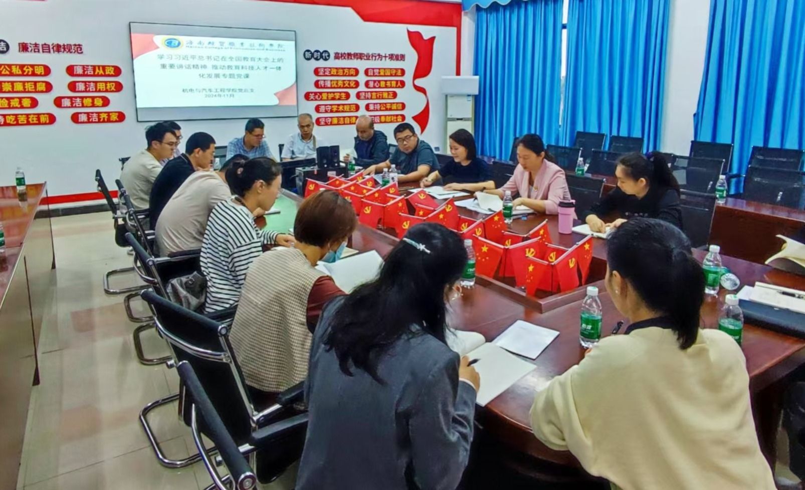 机电与汽车工程学院全体教师党员参加学习。