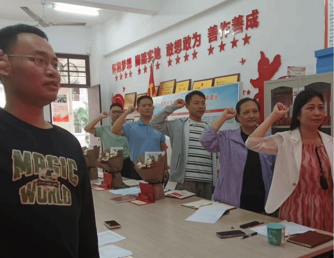 全体党员面对鲜红的党旗,重温入党誓词。学院党总支书记范高智希望全体党员师生铭记入党初心,认真对照入党时的庄严承诺,以优良作风推进学院事业高质量发展。党支部书记王小梅为党支部过政治生日的三名党员范高智、杨玖林、张雪子送上生日贺卡和生日礼物《纪律》。