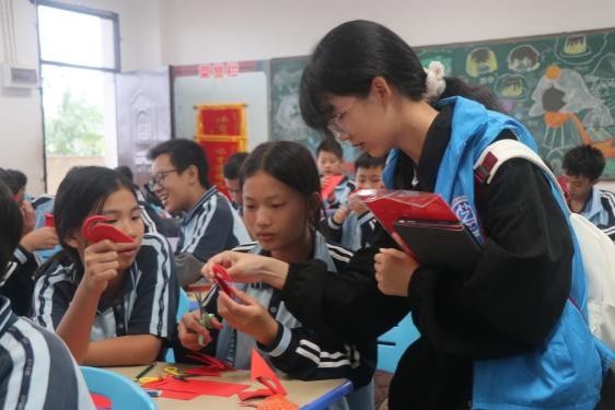 “同学们,想要剪出漂亮的图案,那么我们一定要有耐心,每一刀都要注意连贯和平滑......”2024年12月12日,海口市桂林洋中学三间教室里热闹非凡,充满了欢声笑语。在人文艺术学院学生志愿者的展示和指导下,该校学生正在“零距离”观看、体验国家级非物质文化遗产——剪纸、花灯和扎染,感受中华优秀传统文化魅力。