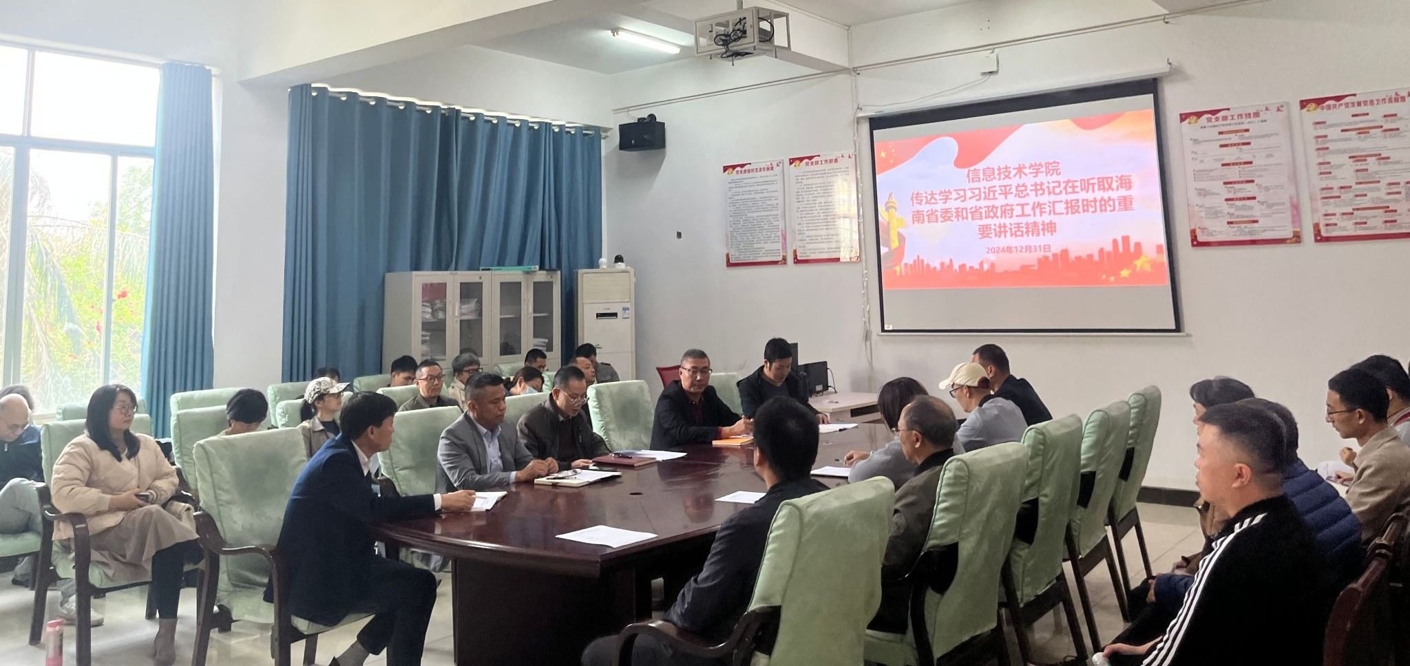 2024年12月31日,信息技术学院召开专题会议,传达学习习近平总书记在听取海南省委和省政府工作汇报时的重要讲话精神。