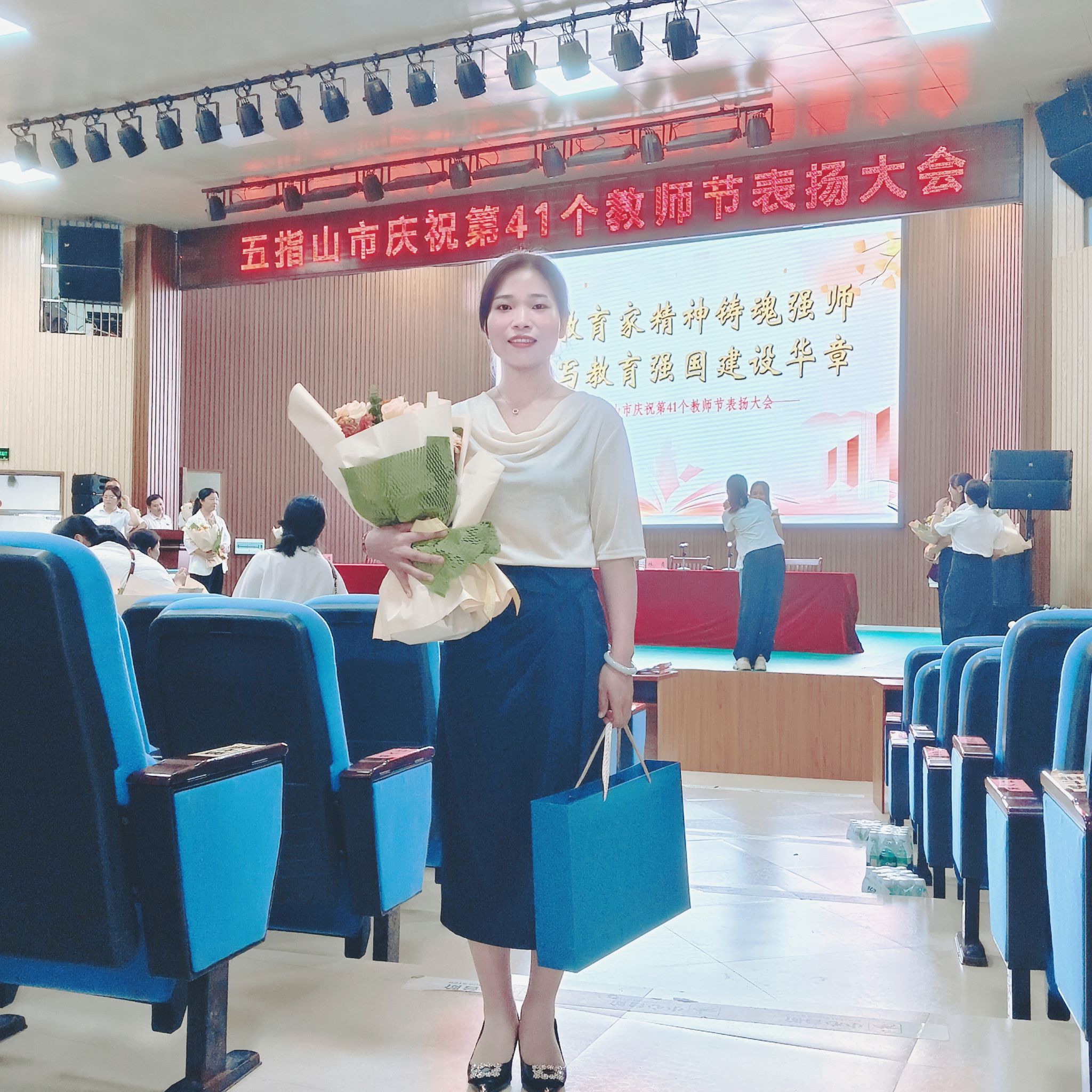 在全省庆祝第41个教师节暨加快教育强省建设会议现场,“海南省优秀教育工作者”、beat365vip官网登录入口马克思主义学院院长马桂琴遇到了一位年轻老师,她身上带着“海南省优秀教师”的荣誉绶带。