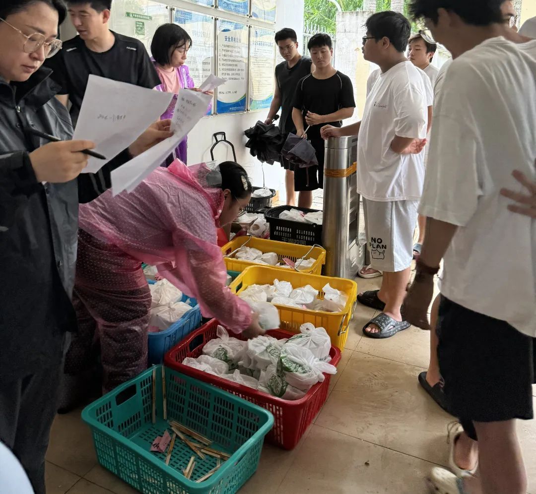 全体学工人员始终坚守在岗位上,与全体在校生同吃、同住,随时准备应对各种突发情况。各辅导员第一时间建立本楼栋应急联络机制,确保能够及时与同学们取得联系。及时转移高楼层学生,组织发放免费午饭、矿泉水、面包等物资,协调解决学生需求……他们穿梭在学生宿舍区,全力为同学们提供生活服务,每一栋宿舍楼都有他们的身影,用心查看每一个角落,用心、用爱守护着同学们的平安。
